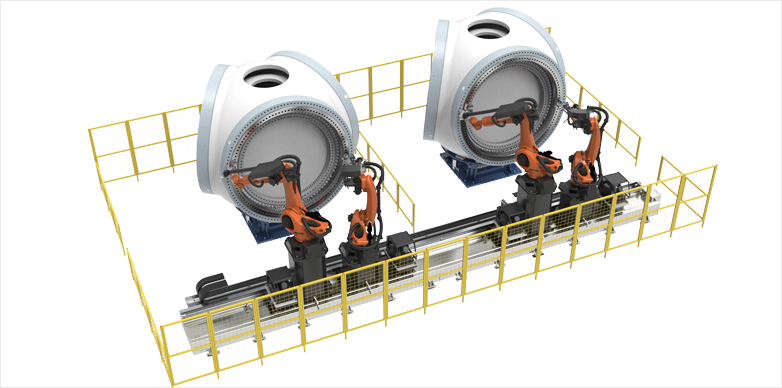 在新能源領域——風電行業(yè),必一运动 B-sports智造國內首創(chuàng)的機器人智能螺栓緊固系統(tǒng),擁有多項專利技術,風電行業(yè)螺栓緊固系統(tǒng)處于市場領先地位;風電主機裝配用的重載AGV智能化脈動生產線,多車聯(lián)動技術獨樹一幟;風電葉片大型曲面智能柔性磨拋技術、機架超厚板自動化焊接機器人系...